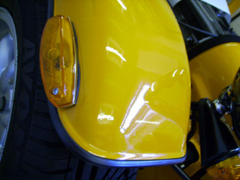 | Protective film strategically placed around the shiny paintwork should keep it that way. |